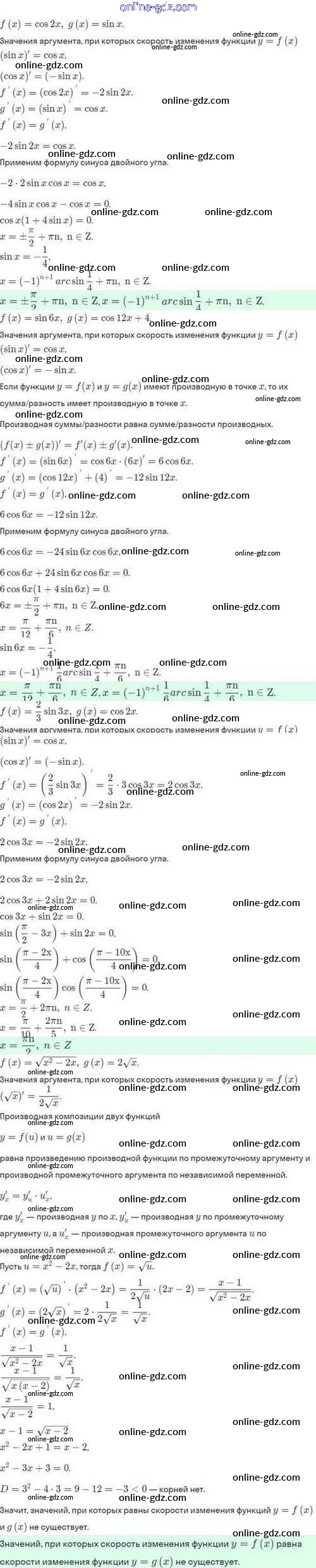 Готовые домашние задания по Алгебре за 10 класс Задачник Мордкович, Семёнов Базовый и углубленный уровень 2017 - §42. Дифференцирование сложной функции. Дифференцирование обратной функции 42.17