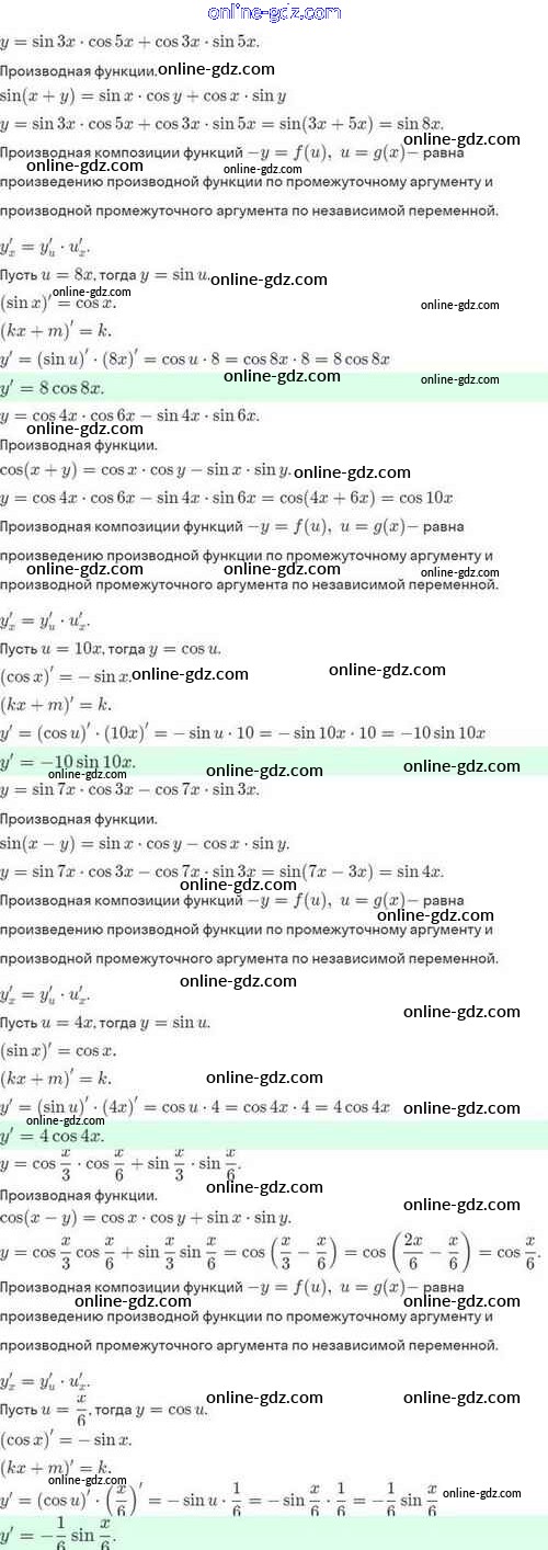 Готовые домашние задания по Алгебре за 10 класс Задачник Мордкович, Семёнов Базовый и углубленный уровень 2017 - §42. Дифференцирование сложной функции. Дифференцирование обратной функции 42.5