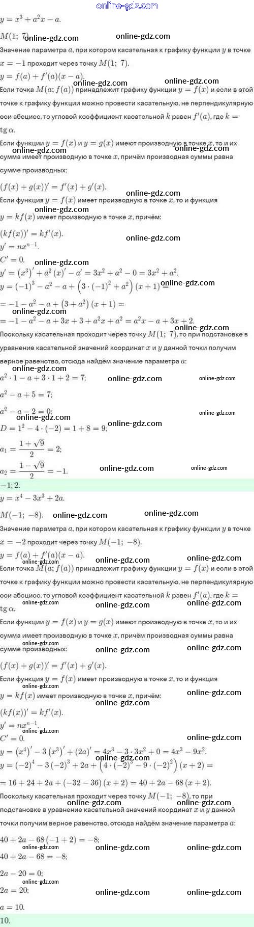 Готовые домашние задания по Алгебре за 10 класс Задачник Мордкович, Семёнов Базовый и углубленный уровень 2017 - §43. Уравнение касательной к графику функции 43.66