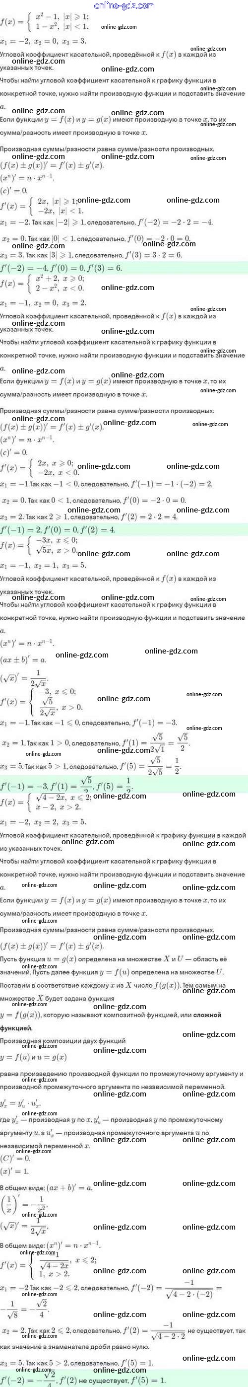 Готовые домашние задания по Алгебре за 10 класс Задачник Мордкович, Семёнов Базовый и углубленный уровень 2017 - §43. Уравнение касательной к графику функции 43.9