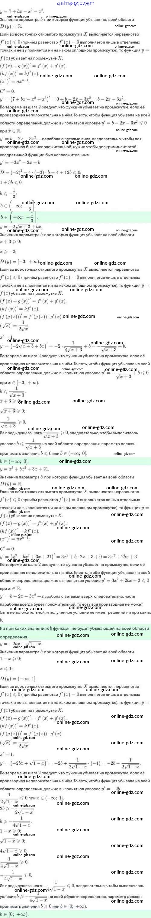 Готовые домашние задания по Алгебре за 10 класс Задачник Мордкович, Семёнов Базовый и углубленный уровень 2017 - §44. Применение производной для исследования функций на монотонность и экстремумы 44.33