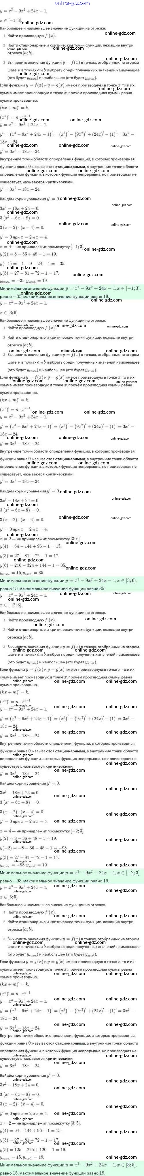 Готовые домашние задания по Алгебре за 10 класс Задачник Мордкович, Семёнов Базовый и углубленный уровень 2017 - §46. Нахождение наибольших и наименьших значений функции 46.10