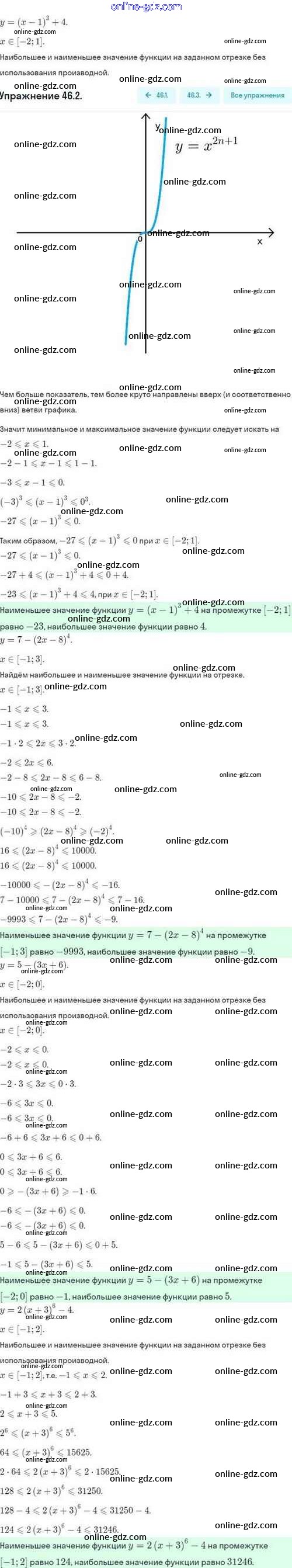 Готовые домашние задания по Алгебре за 10 класс Задачник Мордкович, Семёнов Базовый и углубленный уровень 2017 - §46. Нахождение наибольших и наименьших значений функции 46.2