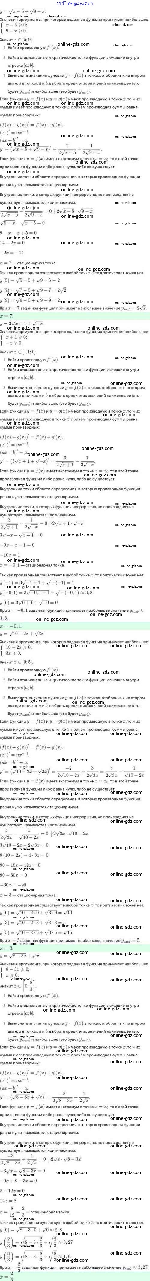 Готовые домашние задания по Алгебре за 10 класс Задачник Мордкович, Семёнов Базовый и углубленный уровень 2017 - §46. Нахождение наибольших и наименьших значений функции 46.28