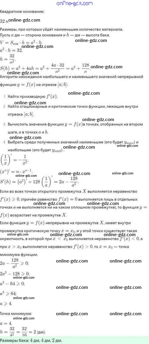 Готовые домашние задания по Алгебре за 10 класс Задачник Мордкович, Семёнов Базовый и углубленный уровень 2017 - §46. Нахождение наибольших и наименьших значений функции 46.61