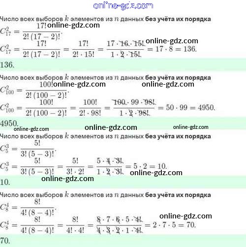 Готовые домашние задания по Алгебре за 10 класс Задачник Мордкович, Семёнов Базовый и углубленный уровень 2017 - §48. Выбор нескольких элементов. Биноминальные коэффициенты 48.5