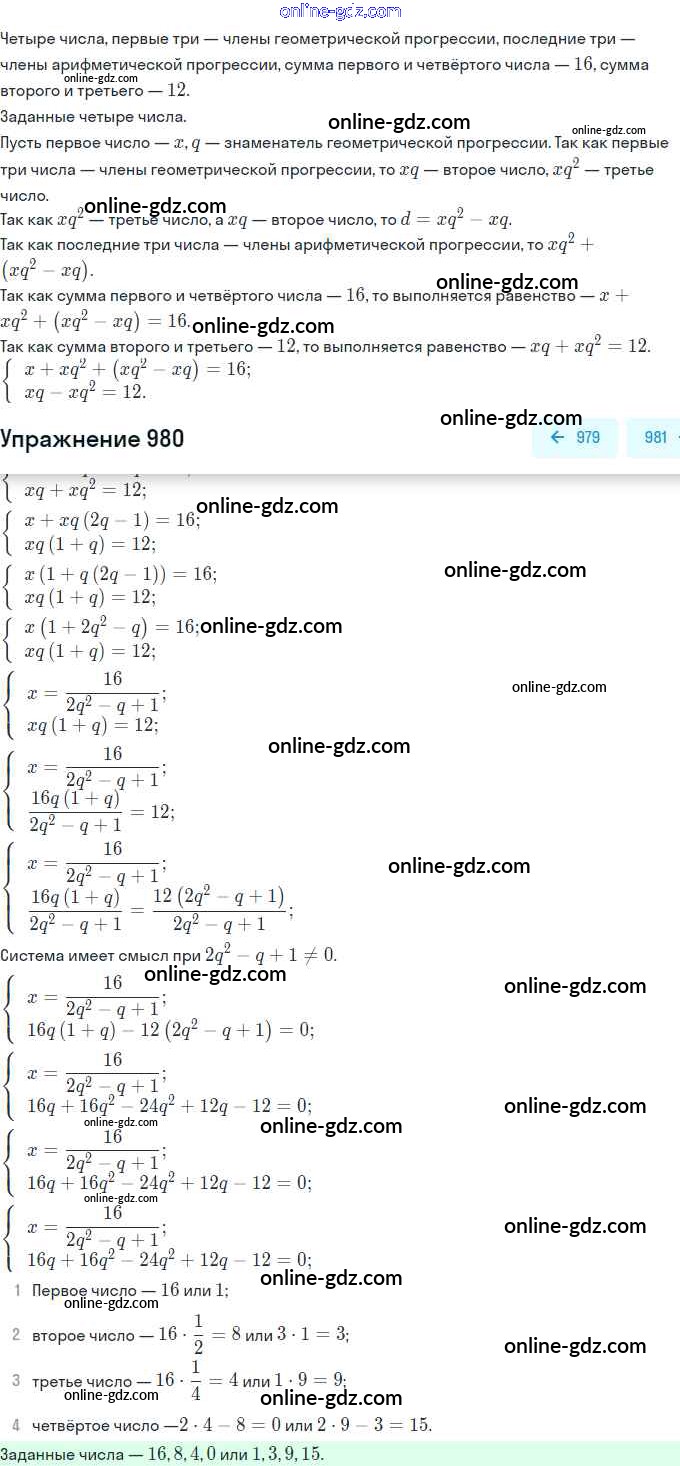 Готовые домашние задания по Алгебре за 11 класс Учебник Колягин, Ткачева Базовый и углубленный уровень 2018 - Упражнения 980