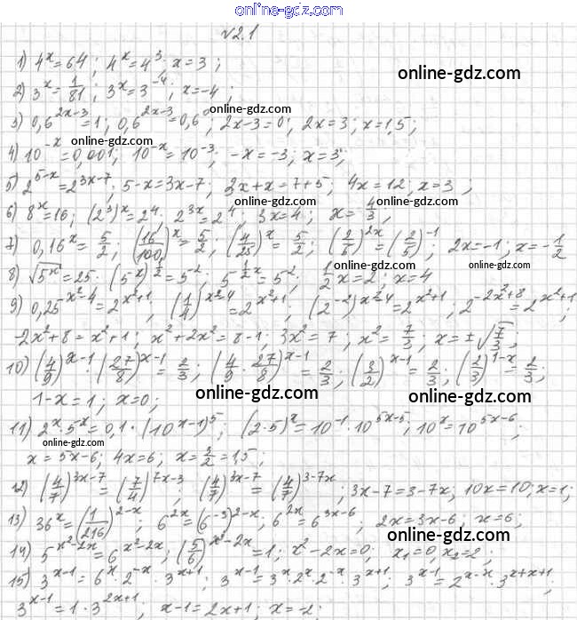 Готовые домашние задания по Алгебре за 11 класс Учебник Мерзляк, Номировский Алгоритм успеха Углубленный уровень 2019 - §2. Показательные уравнения 2.1