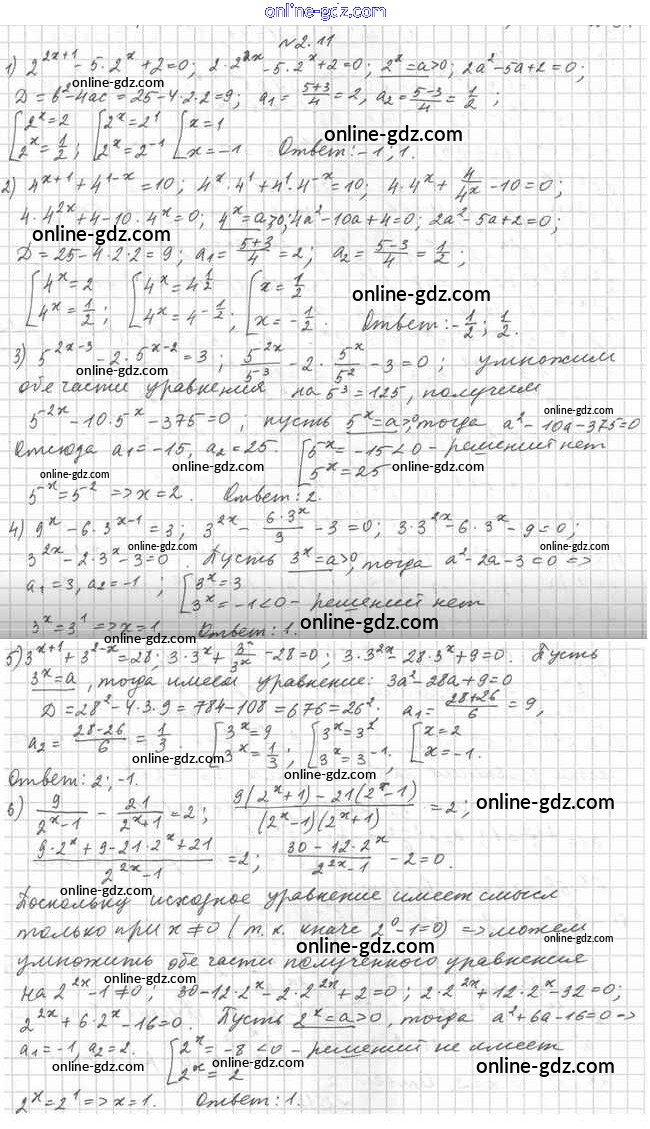 Готовые домашние задания по Алгебре за 11 класс Учебник Мерзляк, Номировский Алгоритм успеха Углубленный уровень 2019 - §2. Показательные уравнения 2.11