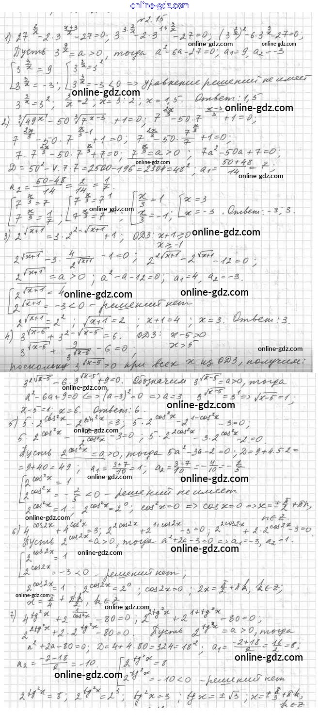 Готовые домашние задания по Алгебре за 11 класс Учебник Мерзляк, Номировский Алгоритм успеха Углубленный уровень 2019 - §2. Показательные уравнения 2.15