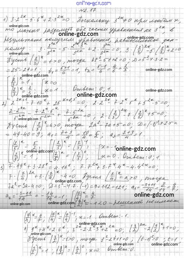 Готовые домашние задания по Алгебре за 11 класс Учебник Мерзляк, Номировский Алгоритм успеха Углубленный уровень 2019 - §2. Показательные уравнения 2.17