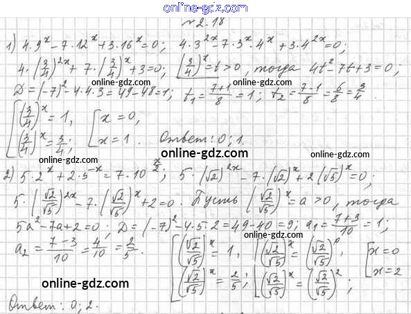 Готовые домашние задания по Алгебре за 11 класс Учебник Мерзляк, Номировский Алгоритм успеха Углубленный уровень 2019 - §2. Показательные уравнения 2.18