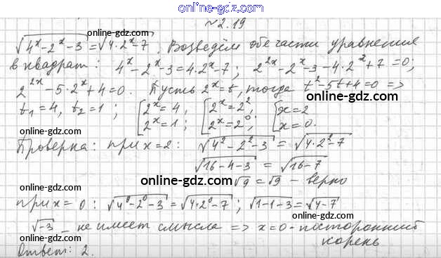 Готовые домашние задания по Алгебре за 11 класс Учебник Мерзляк, Номировский Алгоритм успеха Углубленный уровень 2019 - §2. Показательные уравнения 2.19