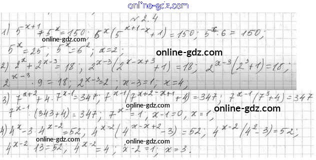 Готовые домашние задания по Алгебре за 11 класс Учебник Мерзляк, Номировский Алгоритм успеха Углубленный уровень 2019 - §2. Показательные уравнения 2.4