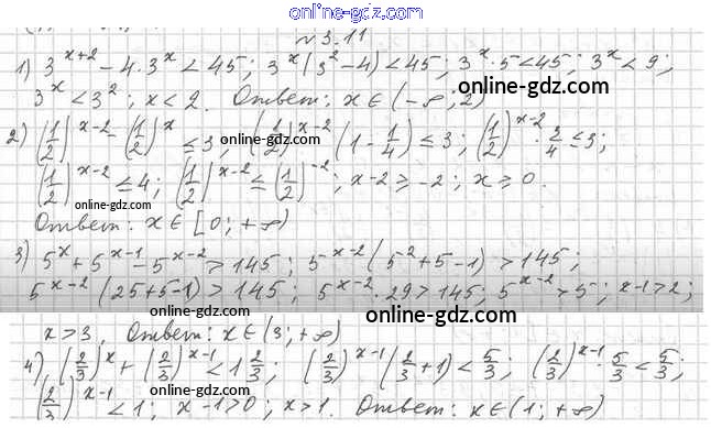 Готовые домашние задания по Алгебре за 11 класс Учебник Мерзляк, Номировский Алгоритм успеха Углубленный уровень 2019 - §3. Показательные неравенства 3.11