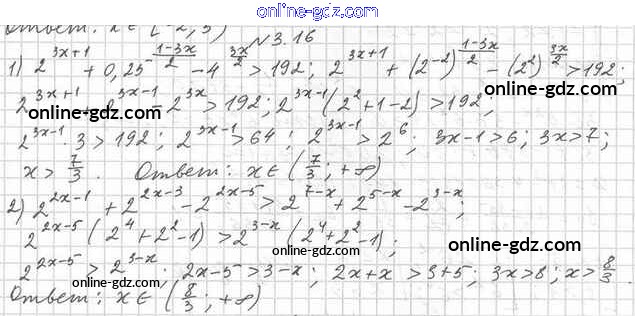 Готовые домашние задания по Алгебре за 11 класс Учебник Мерзляк, Номировский Алгоритм успеха Углубленный уровень 2019 - §3. Показательные неравенства 3.16