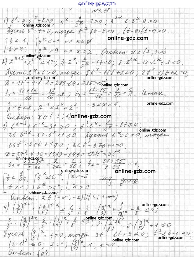 Готовые домашние задания по Алгебре за 11 класс Учебник Мерзляк, Номировский Алгоритм успеха Углубленный уровень 2019 - §3. Показательные неравенства 3.18