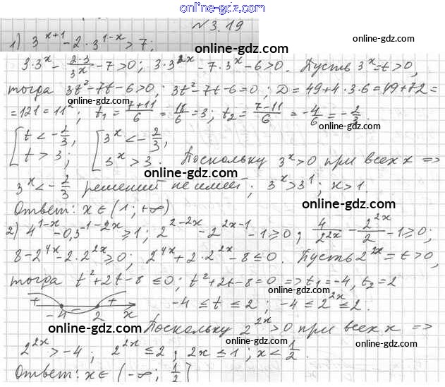 Готовые домашние задания по Алгебре за 11 класс Учебник Мерзляк, Номировский Алгоритм успеха Углубленный уровень 2019 - §3. Показательные неравенства 3.19