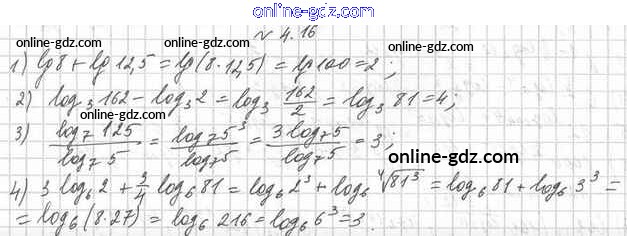 Готовые домашние задания по Алгебре за 11 класс Учебник Мерзляк, Номировский Алгоритм успеха Углубленный уровень 2019 - §4. Логарифм и его свойства 4.16