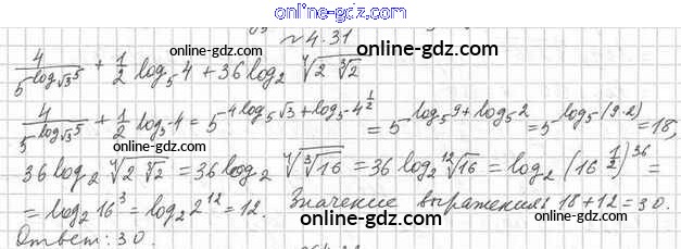 Готовые домашние задания по Алгебре за 11 класс Учебник Мерзляк, Номировский Алгоритм успеха Углубленный уровень 2019 - §4. Логарифм и его свойства 4.31