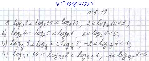 Готовые домашние задания по Алгебре за 11 класс Учебник Мерзляк, Номировский Алгоритм успеха Углубленный уровень 2019 - §5. Логарифмическая функция и её свойства 5.19