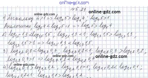 Готовые домашние задания по Алгебре за 11 класс Учебник Мерзляк, Номировский Алгоритм успеха Углубленный уровень 2019 - §5. Логарифмическая функция и её свойства 5.21