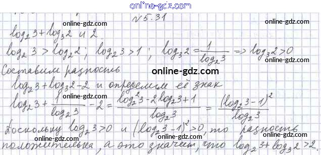 Готовые домашние задания по Алгебре за 11 класс Учебник Мерзляк, Номировский Алгоритм успеха Углубленный уровень 2019 - §5. Логарифмическая функция и её свойства 5.31