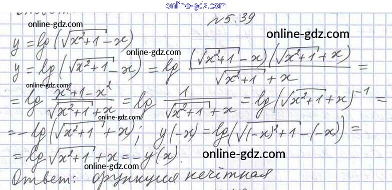 Готовые домашние задания по Алгебре за 11 класс Учебник Мерзляк, Номировский Алгоритм успеха Углубленный уровень 2019 - §5. Логарифмическая функция и её свойства 5.39