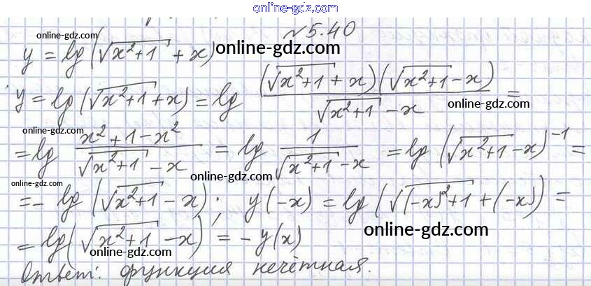 Готовые домашние задания по Алгебре за 11 класс Учебник Мерзляк, Номировский Алгоритм успеха Углубленный уровень 2019 - §5. Логарифмическая функция и её свойства 5.40