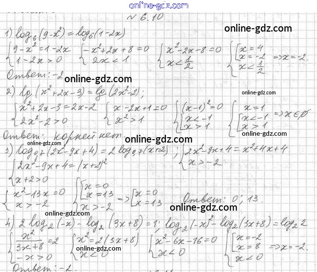 Готовые домашние задания по Алгебре за 11 класс Учебник Мерзляк, Номировский Алгоритм успеха Углубленный уровень 2019 - §6. Логарифмические уравнения 6.10