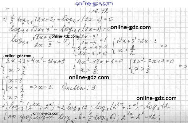 Готовые домашние задания по Алгебре за 11 класс Учебник Мерзляк, Номировский Алгоритм успеха Углубленный уровень 2019 - §6. Логарифмические уравнения 6.12