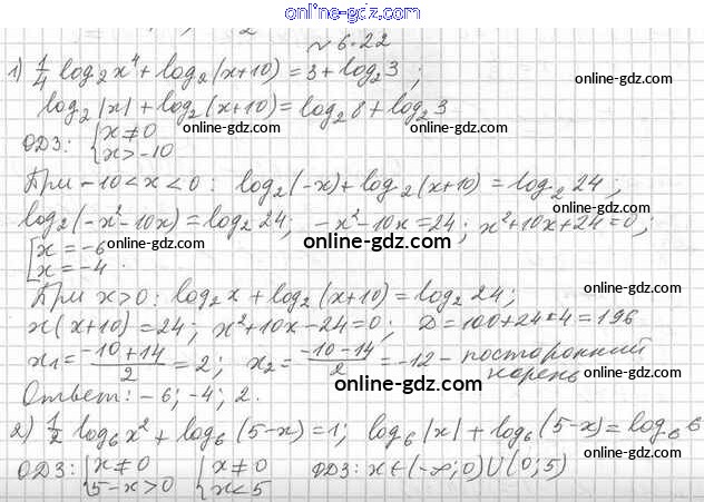 Готовые домашние задания по Алгебре за 11 класс Учебник Мерзляк, Номировский Алгоритм успеха Углубленный уровень 2019 - §6. Логарифмические уравнения 6.22