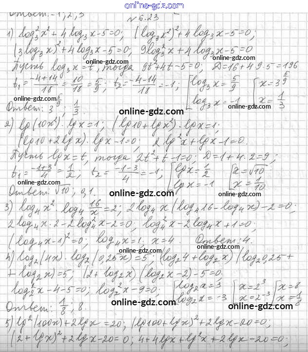 Готовые домашние задания по Алгебре за 11 класс Учебник Мерзляк, Номировский Алгоритм успеха Углубленный уровень 2019 - §6. Логарифмические уравнения 6.23