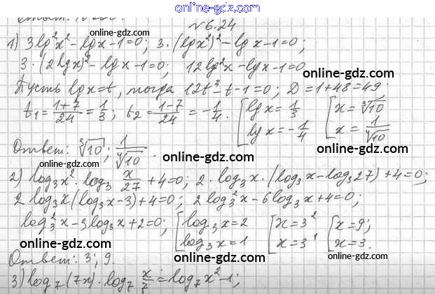 Готовые домашние задания по Алгебре за 11 класс Учебник Мерзляк, Номировский Алгоритм успеха Углубленный уровень 2019 - §6. Логарифмические уравнения 6.24