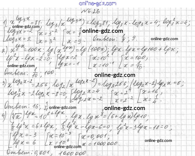 Готовые домашние задания по Алгебре за 11 класс Учебник Мерзляк, Номировский Алгоритм успеха Углубленный уровень 2019 - §6. Логарифмические уравнения 6.26