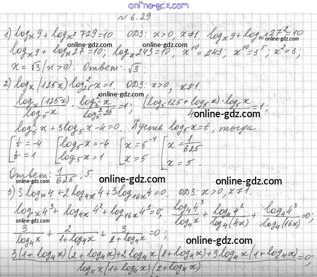 Готовые домашние задания по Алгебре за 11 класс Учебник Мерзляк, Номировский Алгоритм успеха Углубленный уровень 2019 - §6. Логарифмические уравнения 6.29