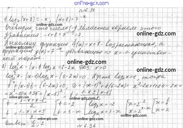 Готовые домашние задания по Алгебре за 11 класс Учебник Мерзляк, Номировский Алгоритм успеха Углубленный уровень 2019 - §6. Логарифмические уравнения 6.35