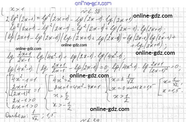 Готовые домашние задания по Алгебре за 11 класс Учебник Мерзляк, Номировский Алгоритм успеха Углубленный уровень 2019 - §6. Логарифмические уравнения 6.38