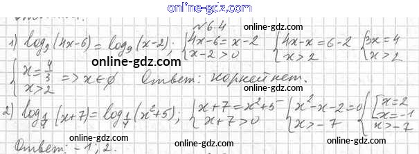 Готовые домашние задания по Алгебре за 11 класс Учебник Мерзляк, Номировский Алгоритм успеха Углубленный уровень 2019 - §6. Логарифмические уравнения 6.4