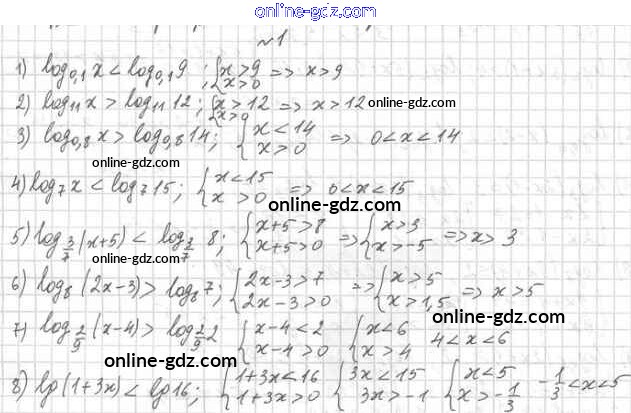 Готовые домашние задания по Алгебре за 11 класс Учебник Мерзляк, Номировский Алгоритм успеха Углубленный уровень 2019 - §7. Логарифмические неравенства 7.1