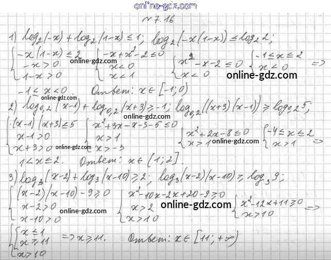 Готовые домашние задания по Алгебре за 11 класс Учебник Мерзляк, Номировский Алгоритм успеха Углубленный уровень 2019 - §7. Логарифмические неравенства 7.16