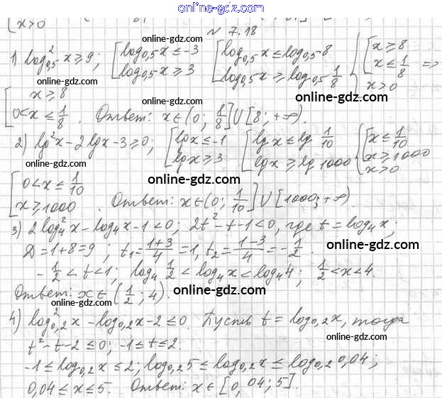Готовые домашние задания по Алгебре за 11 класс Учебник Мерзляк, Номировский Алгоритм успеха Углубленный уровень 2019 - §7. Логарифмические неравенства 7.18