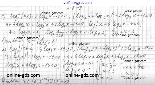 Готовые домашние задания по Алгебре за 11 класс Учебник Мерзляк, Номировский Алгоритм успеха Углубленный уровень 2019 - §7. Логарифмические неравенства 7.19