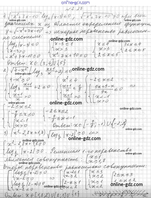 Готовые домашние задания по Алгебре за 11 класс Учебник Мерзляк, Номировский Алгоритм успеха Углубленный уровень 2019 - §7. Логарифмические неравенства 7.27