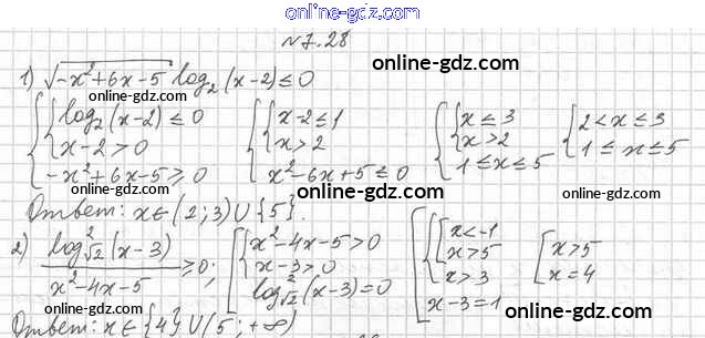 Готовые домашние задания по Алгебре за 11 класс Учебник Мерзляк, Номировский Алгоритм успеха Углубленный уровень 2019 - §7. Логарифмические неравенства 7.28