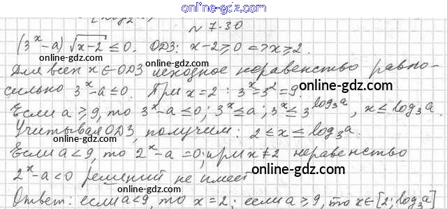 Готовые домашние задания по Алгебре за 11 класс Учебник Мерзляк, Номировский Алгоритм успеха Углубленный уровень 2019 - §7. Логарифмические неравенства 7.30