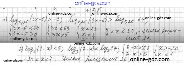 Готовые домашние задания по Алгебре за 11 класс Учебник Мерзляк, Номировский Алгоритм успеха Углубленный уровень 2019 - §7. Логарифмические неравенства 7.5
