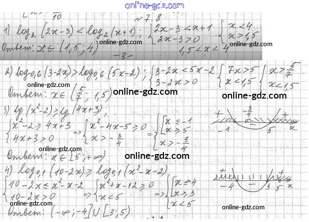 Готовые домашние задания по Алгебре за 11 класс Учебник Мерзляк, Номировский Алгоритм успеха Углубленный уровень 2019 - §7. Логарифмические неравенства 7.8