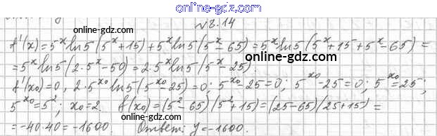 Готовые домашние задания по Алгебре за 11 класс Учебник Мерзляк, Номировский Алгоритм успеха Углубленный уровень 2019 - §8. Производные показательной и логарифмической функций 8.14