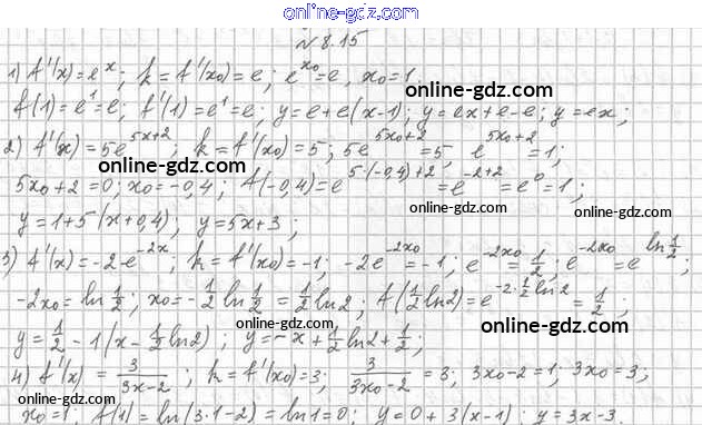 Готовые домашние задания по Алгебре за 11 класс Учебник Мерзляк, Номировский Алгоритм успеха Углубленный уровень 2019 - §8. Производные показательной и логарифмической функций 8.15